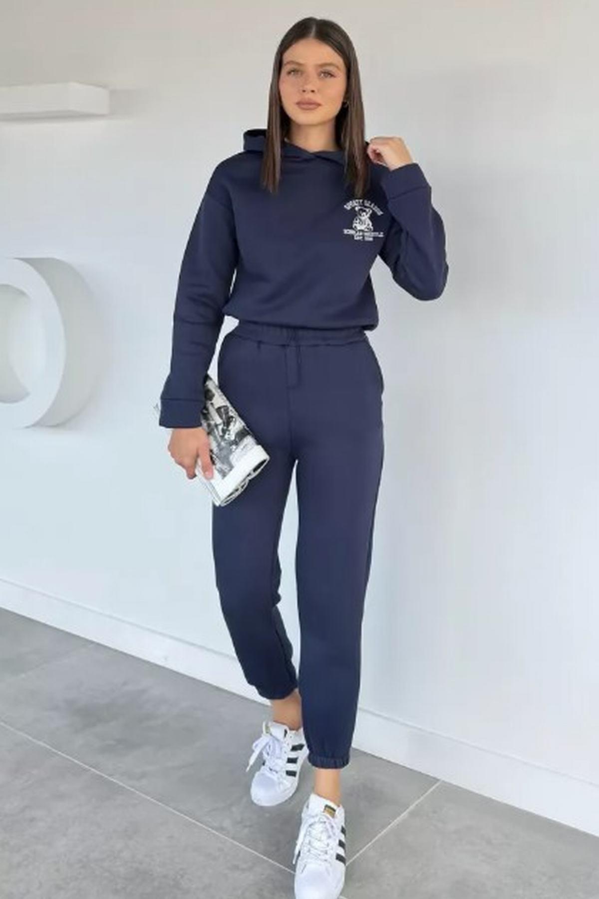 Kadın Kapüşonlu Üç İplik Şardonlu Sweat Eşofman Takımı Lacivert
